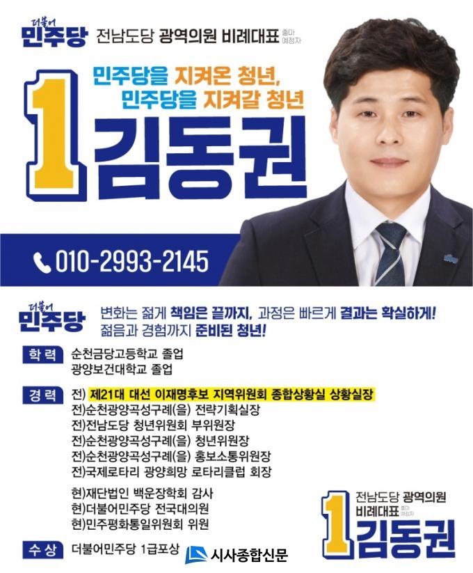±¤¾çÁö¿ª¿¡¼ ±¤¿ªÀÇ¿ø ºñ·Ê´ëÇ¥¿¡ µµÀüÀåÀ» ³»¹Î °ÍÀº ±è ¿¹ºñÈ帰¡ óÀ½ÀÌ´Ù.