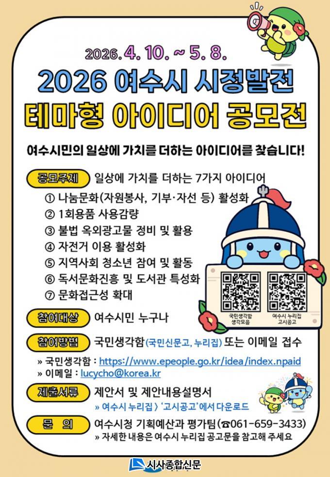 ¿©¼ö½Ã °ü°èÀÚ´Â ¡°½Ã¹ÎÀÇ ÀǰßÀÌ ½ÇÁ¦ Á¤Ã¥À¸·Î À̾îÁö´Â ÀÇ¹Ì ÀÖ´Â °ø¸ðÀü¡±À̶ó¸ç ¡°ÀÏ»óÀÇ ºÒÆíÀ» °³¼±ÇÏ°í ¿©¼öÀÇ ¹Ì·¡¸¦ ¹àÈú ´Ù¾çÇÑ ¾ÆÀ̵ð¾î¸¦ °¡Áø ½Ã¹ÎµéÀÇ ¸¹Àº °ü½É°ú Âü¿©¸¦ ±â´ëÇÑ´Ù¡±°í ÀüÇß´Ù.