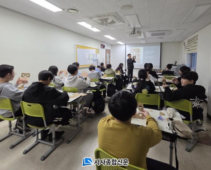 Áö³ 6ÀÏ¿¡´Â Àüü Áßµî û¼Ò³âÀ» ´ë»óÀ¸·Î ¡¸VR¡¤AR Áø·Î 縰Áö¡¹¸¦ ¿î¿µÇß´Ù. Âü°¡ û¼Ò³âµéÀº °¡»óÇö½Ç(VR)°ú Áõ°Çö½Ç(AR) ±â¼úÀ» Á÷Á¢ üÇèÇÏ¸ç °ü·Ã ºÐ¾ßÀÇ Á÷¾÷ ¼¼°è¸¦ Ž»öÇÏ´Â ½Ã°£À» °¡Á³´Ù.