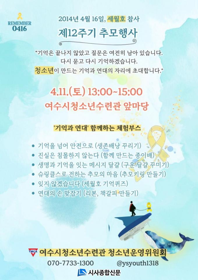 ¿©¼öYMCA °ü°èÀÚ´Â ¡°À̹ø ¼¼¿ùÈ£ 12Áֱ⠱â¾ï Ȱµ¿Àº û¼Ò³âµéÀÌ ´Ü¼øÇÑ Âü¿©ÀÚ°¡ ¾Æ´Ï¶ó Á÷Á¢ Ãß¸ð°ø¿¬°ú ºÎ½º¸¦ ¿î¿µÇÏ¸ç ±â¾ïÀÇ ÁÖü·Î ³ª¼¹´Ù´Â Á¡¿¡¼ ´õ ¶æ±í´Ù¡±¸ç ¡°¼¼¿ùÈ£¸¦ ÀØÁö ¾Ê´Â ÀÏÀº °ú°Å¸¦ Ã߸ðÇÏ´Â µ¥ ±×Ä¡´Â °ÍÀÌ ¾Æ´Ï¶ó, »ý¸í°ú ¾ÈÀüÀÌ ¿ì¼±µÇ´Â »çȸ¸¦ ¸¸µé±â À§ÇÑ ÇöÀçÀÇ ½Çõ¡±À̶ó°í ¹àÇû´Ù.
