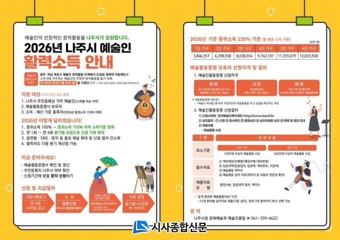15ÀÏ ³ªÁֽÿ¡ µû¸£¸é Áö¿ª ¿¹¼úÀÎÀÇ ¾ÈÁ¤ÀûÀΠâÀÛ È°µ¿À» µ½±â À§ÇØ ¡®2026³â 2ºÐ±â ¿¹¼úÀΠȰ·Â¼Òµæ Áö¿ø±Ý¡¯ ½ÅûÀ» ¹Þ°í ÀÖ´Ù.