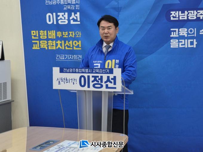 ÀÌ ¿¹ºñÈ帴 16ÀÏ ±¤Áֽñ³À°Ã» ºê¸®Çη뿡¼ ±ä±Þ ±âÀÚȸ°ßÀ» ¿°í ¹ÎÇü¹è Ưº°½ÃÀå Èĺ¸ÀÇ¤Ó ÇÙ½É °ø¾à°ú ÀÚ½ÅÀÇ ±³À°Á¤Ã¥À» °áÇÕÇÑ ¡®Àü³²±¤ÁÖ ±³À°-½ÃÁ¤ »ó»ý ºñÀü¡¯À» ¹ßÇ¥Çß´Ù.