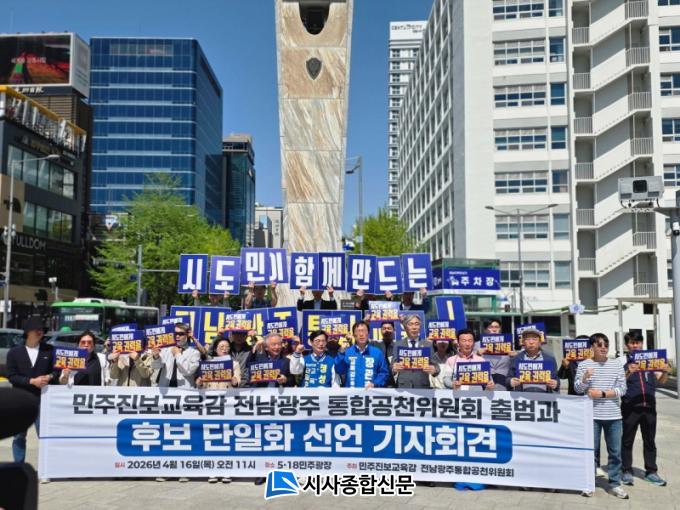[½Ã»çÁ¾ÇսŹ® = ¿À½ÂÅà ±âÀÚ] Àå°üÈ£ Àü³²±¤ÁÖÅëÇÕÆ¯º°½Ã±³À°°¨ ¿¹ºñÈ帴 4¿ù 16ÀÏ ±¤ÁÖ 5¡¤18¹ÎÁÖ±¤Àå¿¡¼­ ¿­¸° ¡®¹ÎÁÖ¡¤Áøº¸ ±³À°°¨ Àü³²¡¤±¤ÁÖ ÅëÇÕ°øÃµÀ§¿øÈ¸ ±¸¼º ¹× Èĺ¸ ´ÜÀÏÈ­ ÇÕÀÇ ¼±¾ð ±âÀÚȸ°ß¡¯°ú °ü·ÃÇØ ¡°´ÜÀÏÈ­¸¦ ÇâÇÑ °á´ÜÀÌ ÇÕÀÇ·Î ¿Ï¼ºµÆ´Ù¡±¸ç ¡°Àü³²¡¤±¤ÁÖ ±³À°´ëÀüȯÀÇ Ãâ¹ßÁ¡ÀÌ ¸¶·ÃµÆ´Ù¡±°í ¹àÇû´Ù.