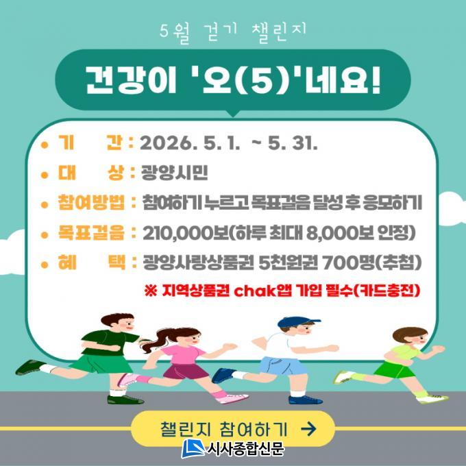 À̹ø 縰Áö´Â ÇÏ·ç ÃÖ´ë 8õ °ÉÀ½±îÁö ÀÎÁ¤µÇ¸ç, ±â°£ ³» ´©Àû 21¸¸ º¸¸¦ ´Þ¼ºÇÑ Âü¿©ÀÚ´Â ±¤¾ç»ç¶û»óǰ±Ç 5õ ¿ø±Ç ÀÀ¸ð ÀÚ°ÝÀÌ ÁÖ¾îÁø´Ù. ½Ã´Â ¸ñÇ¥ °ÉÀ½ ¼ö¸¦ ´Þ¼ºÇÑ Âü¿©ÀÚ Áß Ãß÷À» ÅëÇØ 700¸í¿¡°Ô »óǰ±ÇÀ» Áö±ÞÇÒ °èȹÀÌ´Ù.